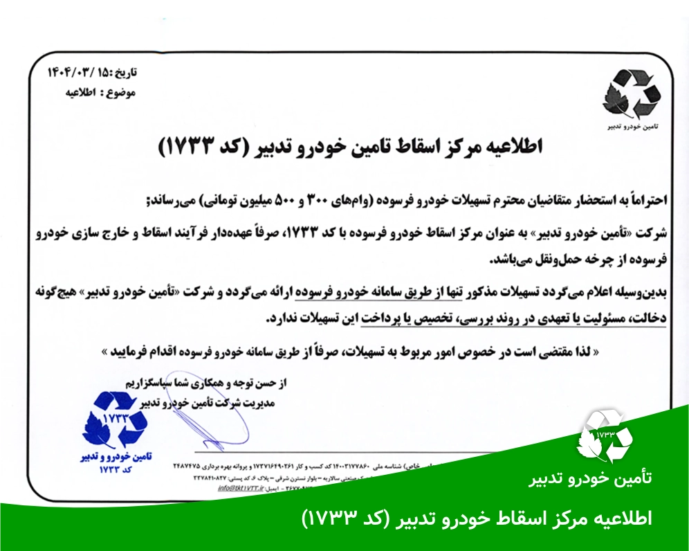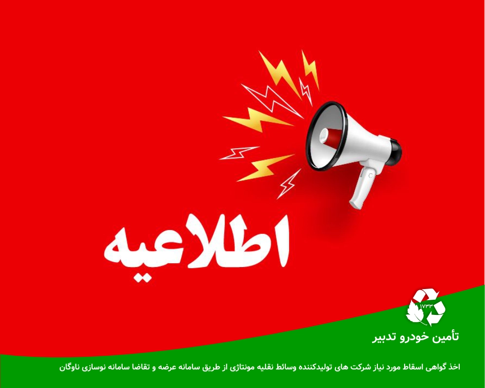 اطلاعیه- لزوم ثبت اطلاعات نماینده برای کلیه شرکت های واردکننده و مراکز اسقاط از تاریخ 1404/5/12 مشاهده اطلاعیه » مرداد 12, 1404 بدون دیدگاه